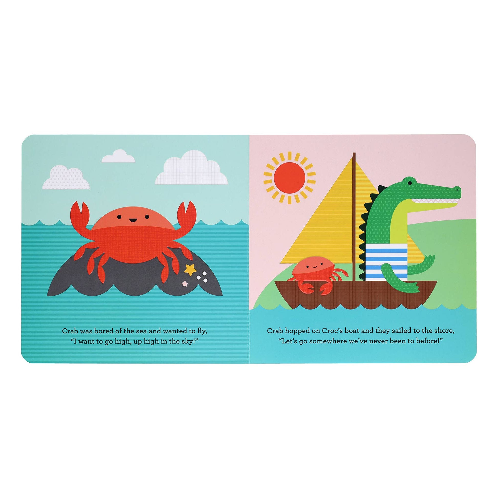 Join in with Crab’s journey from the sea to the sky! As children follow along and make new animal friends, they can find the special cut-outs, layers, and textured areas on each page and become part of the story. The jaunty rhythm of the rhyming text and brightly colored illustrations will keep children engaged throughout, and Crab’s quest to achieve the dream of flying up high will build strong foundations for perseverance and self-belief in your little one.
