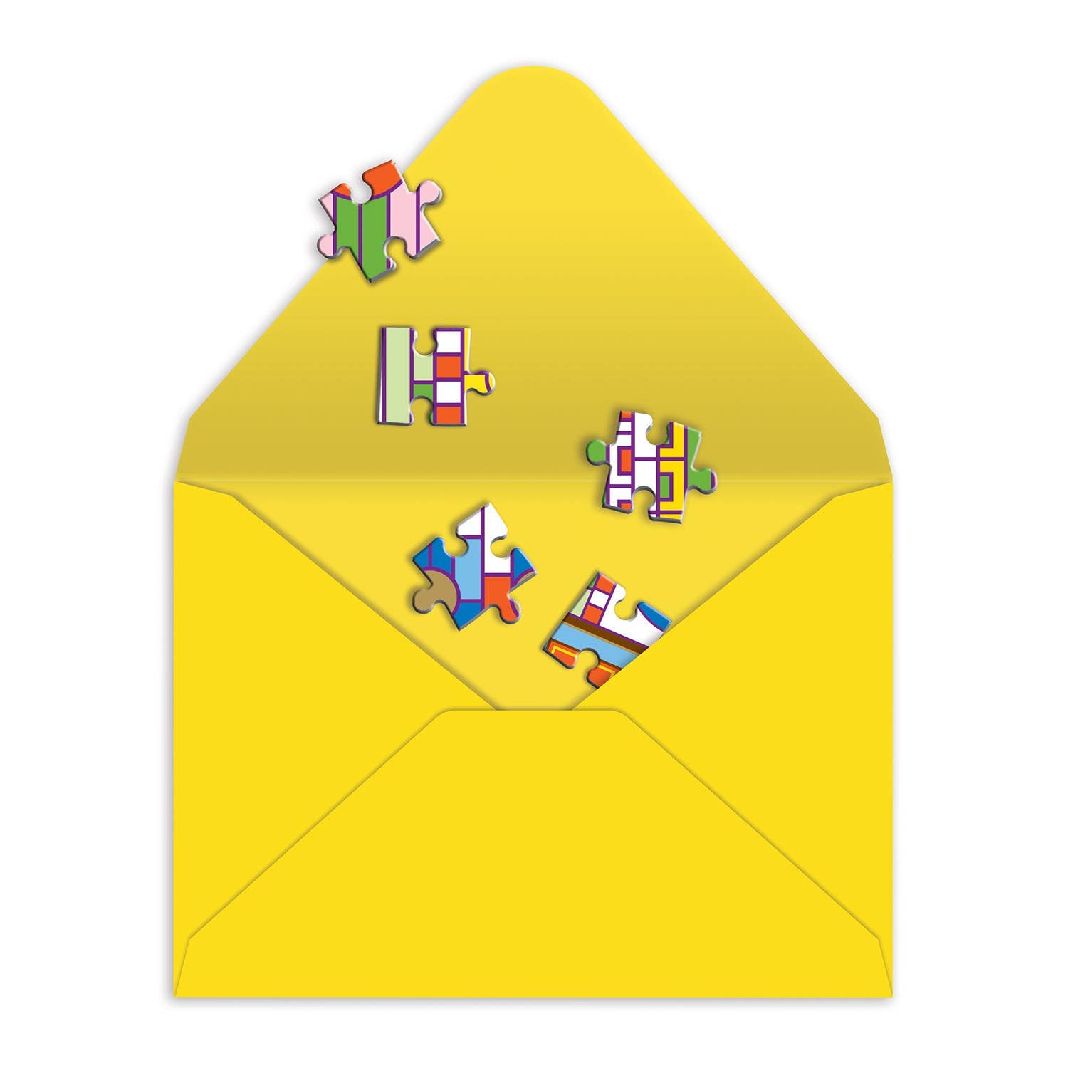 The Frank Lloyd Wright Saguaro Forms & Cactus Flowers Greeting Card Puzzle from Galison is a 60-piece postcard puzzle featuring Wright's colorful and iconic geometric design. Package comes with the puzzle fully assembled. Write the message on the back, break up the pieces, place in the envelope and mail.