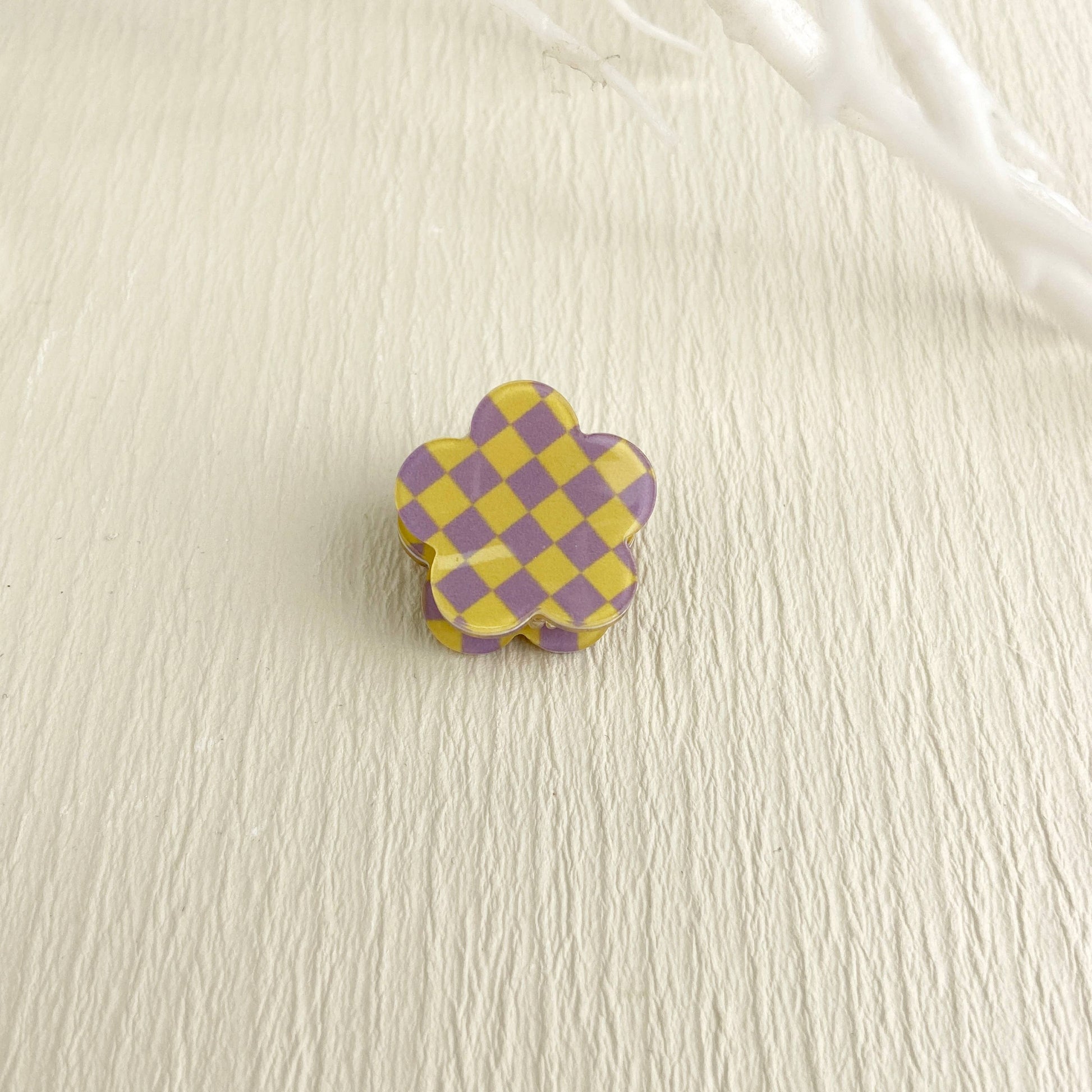 The hair clip would feature a checkerboard pattern as its primary design element. This pattern consists of alternating squares in two contrasting colors, typically. The checkerboard design can be on the surface of the hair clip.