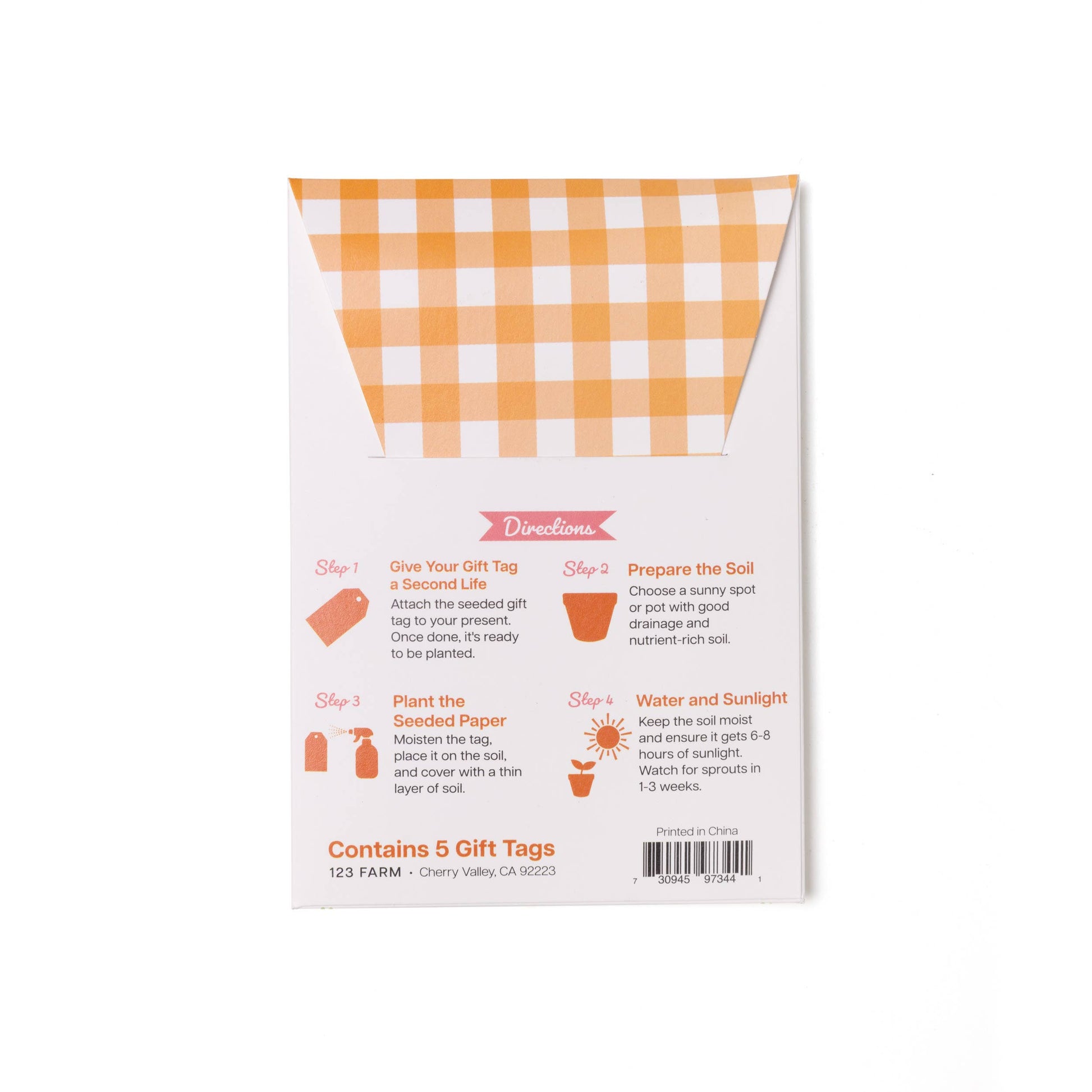 Give your gift an eco-friendly touch with our Plantable Seed Gift Tags. Inspired by vintage seed packet designs, each tag features a unique fruit, vegetable, or flower illustration. Once the tag has served its purpose, plant it in soil to grow the fruit, vegetable, or flower displayed on the cover—giving it a second life!