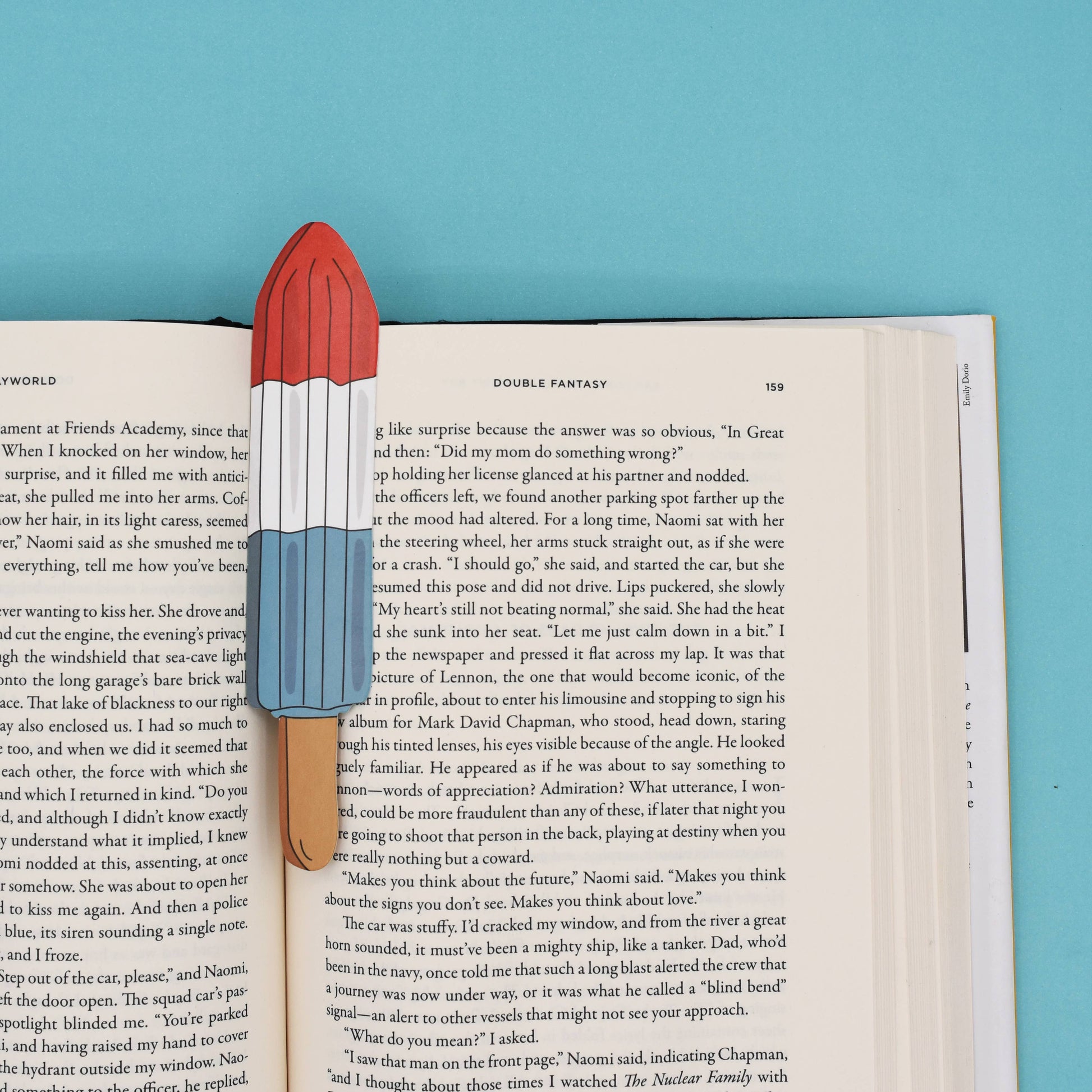 It's a popsicle in a book! Bookmarks are underrated... until you have a nostalgic red, white and blue bomb pop sticking out of your summer read.