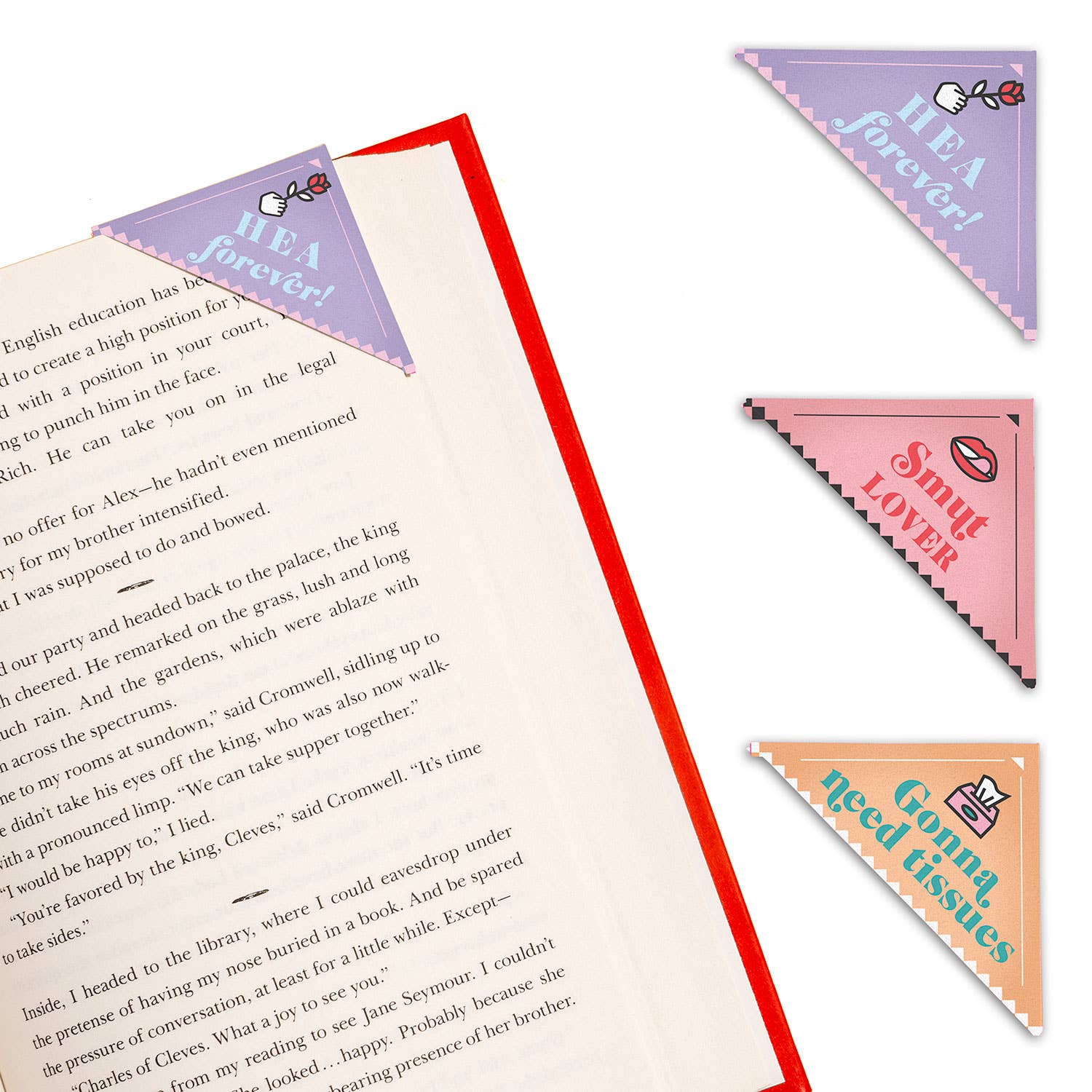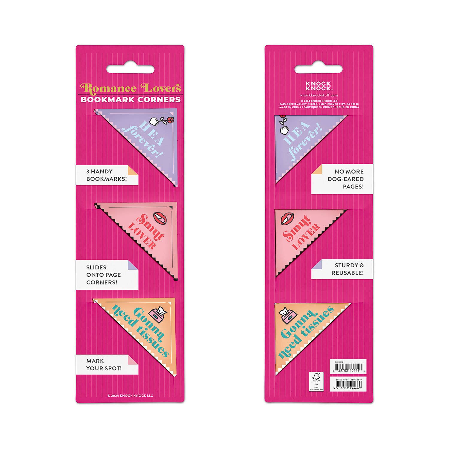 Book lovers agree: you can never have too many books . . . or bookmarks! These unique corner bookmarks hold your spot, prevent dog-ears, and let you self-identify as a romance fiction superfan!