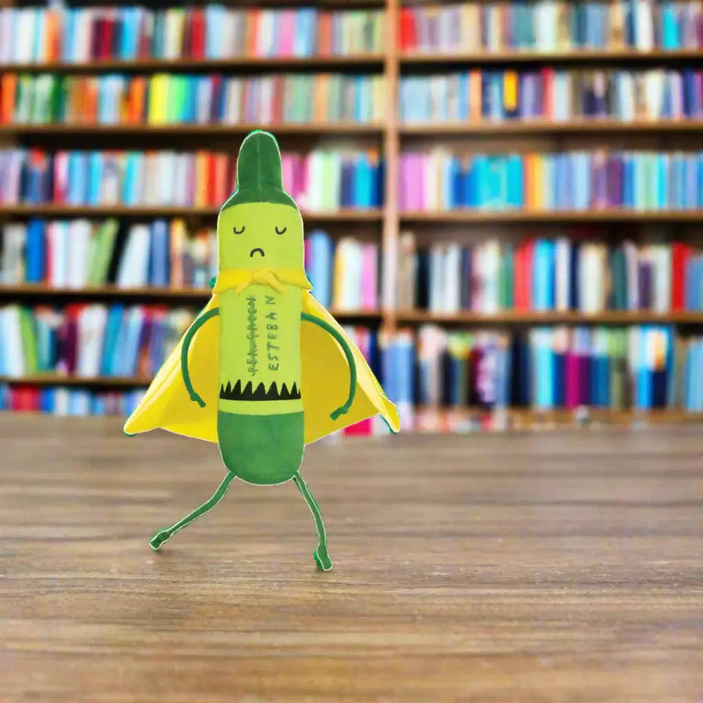 From the wildly bestselling books by Drew Daywalt and Oliver Jeffers, comes a new crayon to love! By popular demand, Esteban the Magnificent joins our Day the Crayons Quit line. Measuring 12" tall, Esteban has pea-green plush, a determined embroidered expression, and a bright yellow cape. Esteban is ready to join your Crayon Collection today!