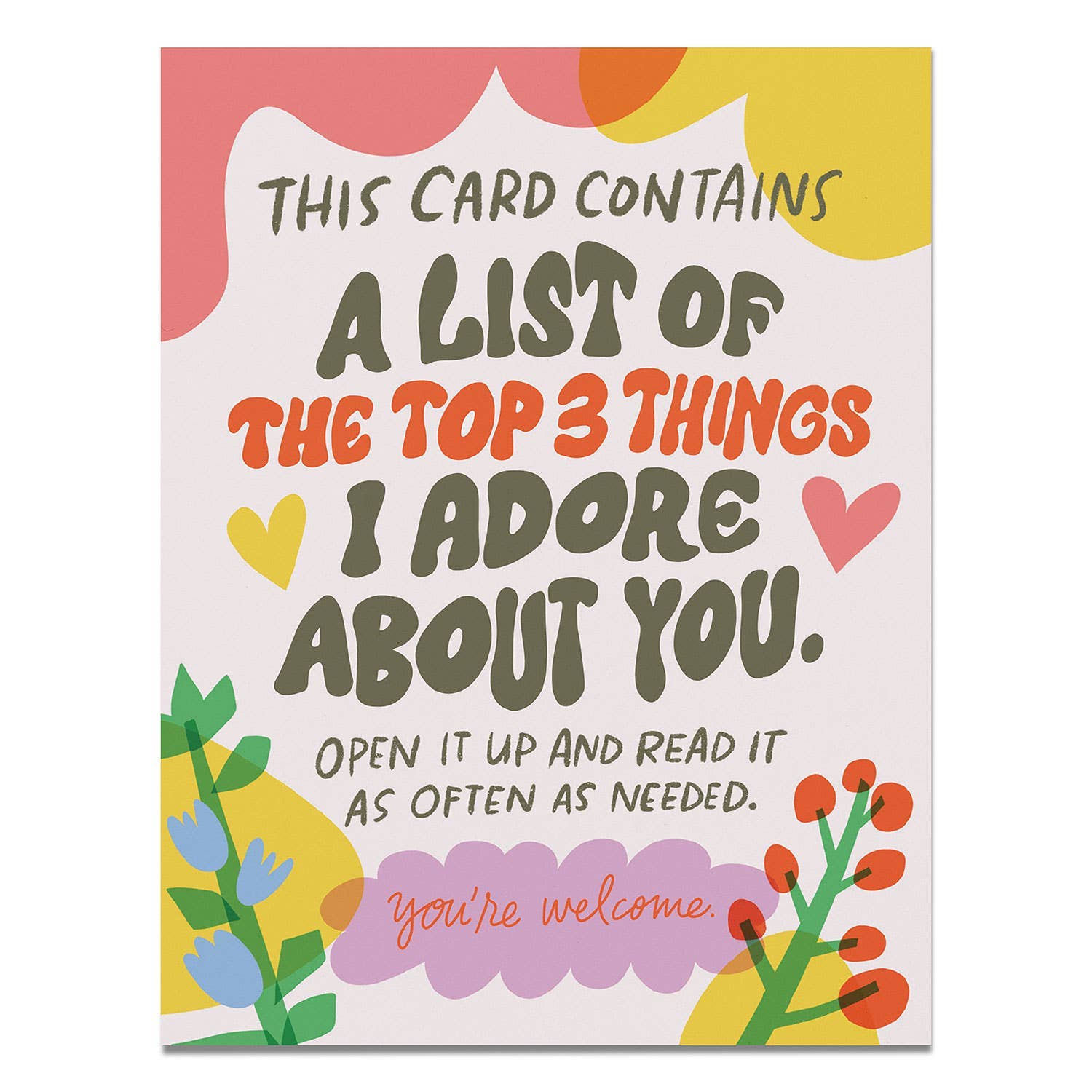 #1: Helps you know what to write inside of it – a short list of three things you adore about the recipient!