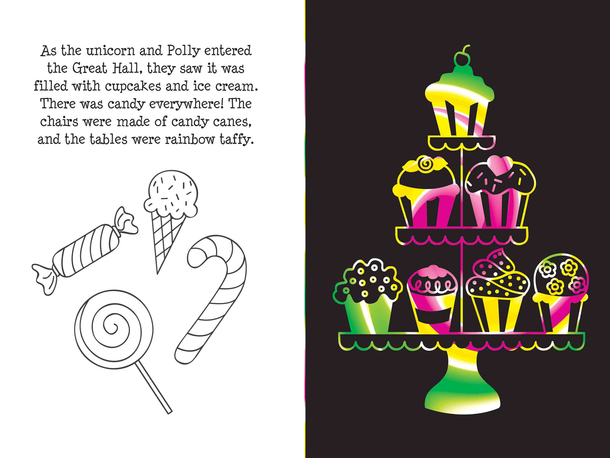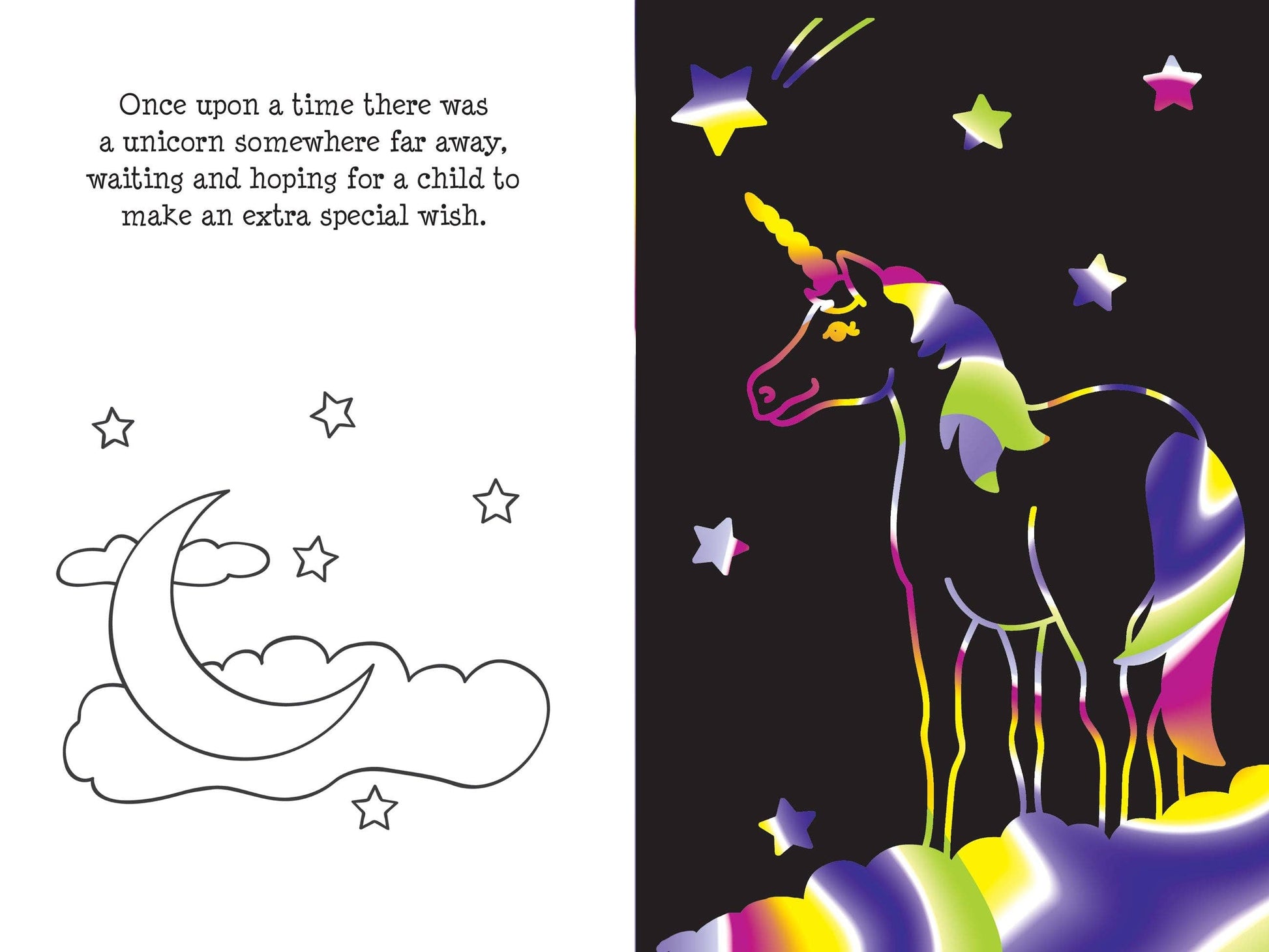 Join a girl named Polly and her unicorn friend on a magical journey to an enchanted castle! Use your stylus pen like a magic wand, tracing the unicorn, friends, and all the wonders along the way, and discover the secret colors -- silver, gold, and rainbow -- beneath the black-coated pages! This is a Trace-Along Scratch and Sketch! White outlines on black scratch-off pages create a fun way for younger children (5 and up) to build confidence in their creativity as they reveal brilliant patterns, swirls, and colors beneath! They can also use the sketch pages in the back to draw their own unicorn pictures. Includes a wooden stylus for drawing on the black-coated pages. Includes 20 black-coated scratch-off pages, 20 illustrated pages with story text, and 20 extra pages for independent drawing and sketching. Suggested ages: 5 and up. Sturdy wire-o hardcover binding. Art